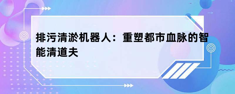 排污清淤机器人:重塑都市血脉的智能清道夫