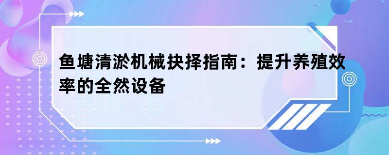 鱼塘清淤机械抉择指南:提升养殖效率的全然设备