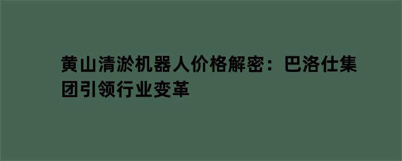 黄山清淤机器人价格解密:巴洛仕集团引领行业变革