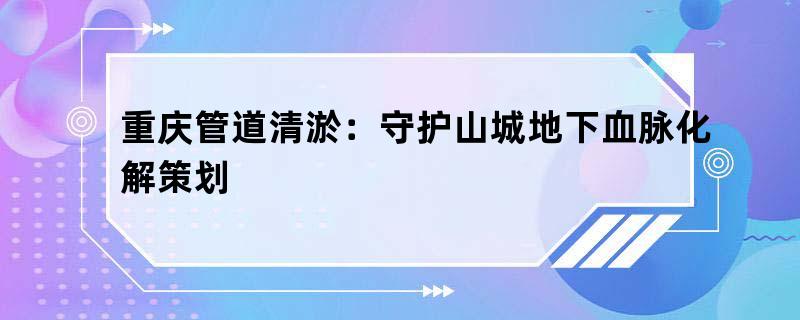 重庆管道清淤:守护山城地下血脉化解策划