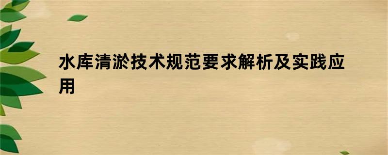 水库清淤技术规范要求解析及实践应用