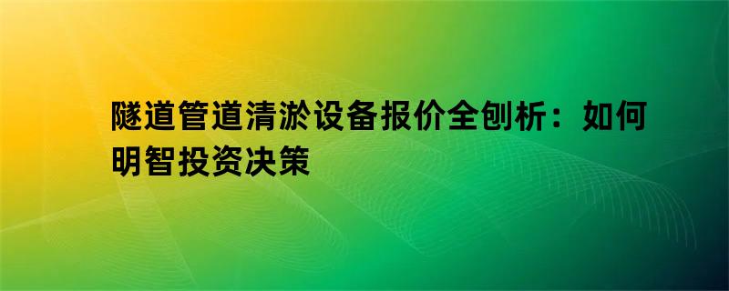 隧道管道清设备的采购,是一项融合了技术推断、市场洞察和财务的系统工程。设备报价的差异,本质上是技术路径、性能配置、品牌价值与长期服务能力的综合体现。盲目低价可能意味着牺牲效率、增加毛病危险并推高隐本;而一味抉择最贵,也可能形成投资浪费。