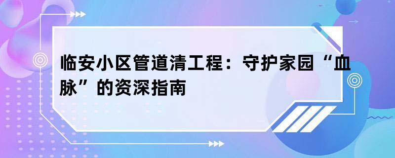 临安小区管道清工程:守护家园“血脉”的资深指南