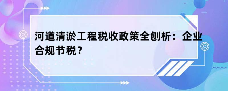 河道清淤工程税收政策全刨析:企业合规节税?