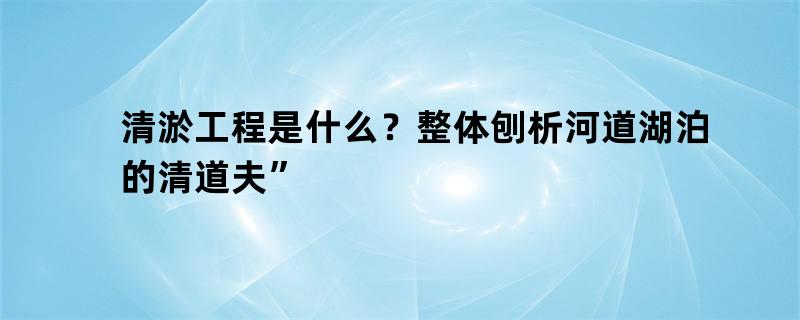 清淤工程是什么?整体刨析河道湖泊的清道夫”