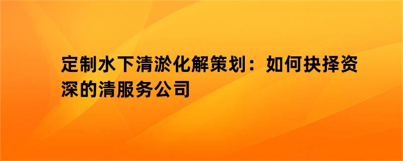 定制水下清淤化解策划:如何抉择资深的清服务公司