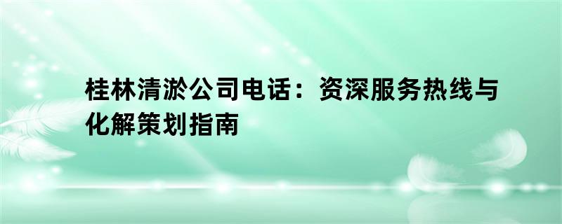 拨打一个桂林清淤公司电话,您获得的将是一站化解策划: