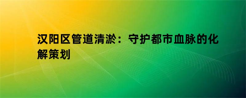 汉阳区管道清淤:守护都市血脉的化解策划