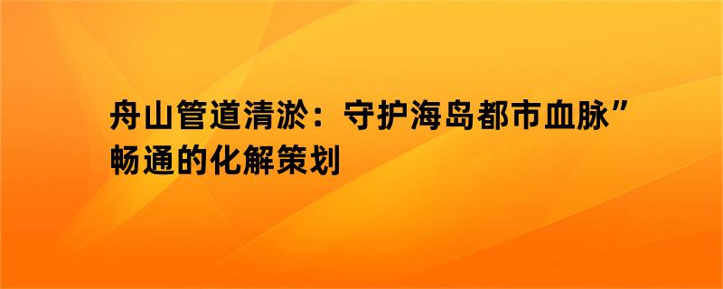 舟山管道清淤:守护海岛都市血脉”畅通的化解策划