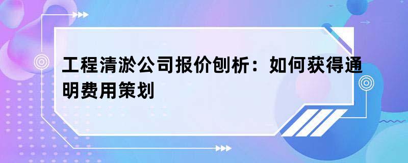 工程清淤公司报价刨析:如何获得通明费用策划