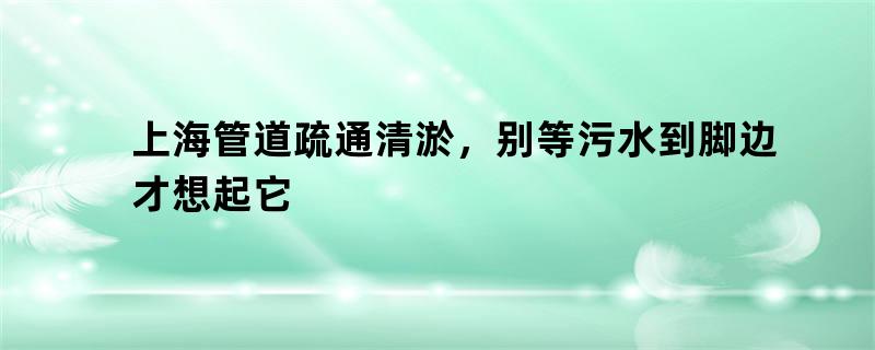 在上海,管道疏通清这件事,远不止是“通一下”那么简单。