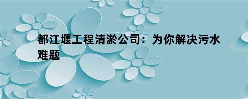 在当今社会,污水治理已经成为了一个非常重要的问题,都江堰工程清淤公司就是专业从事该领域的公司之一。本文将对这家公司进行深入的介绍,以了解其在污水治理领域的优势和贡献。