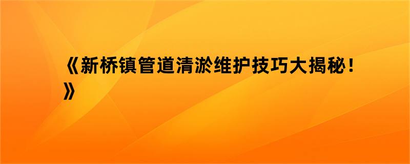 《新桥镇管道清淤维护技巧大揭秘!》