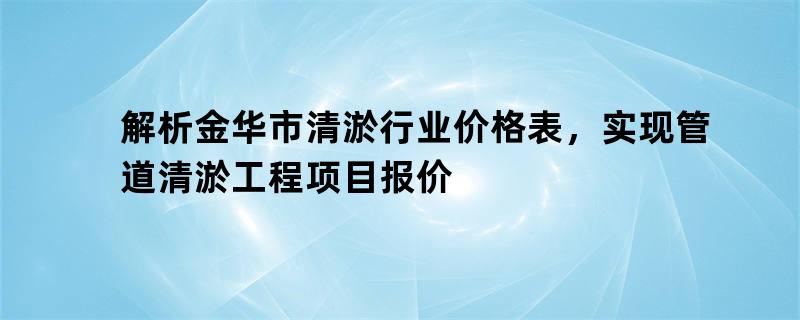 随着城市化的进程,金华市清淤行业得到了快速发展。为了更好地实现管道清淤工程项目报价,我们需要对金华市清淤行业价格表进行精细解析。本文将从不同的方面分析解析这个价格表,帮助读者更好地了解金华市清淤行业的市场情况,为管道清淤工程项目的报价提供一定的参考。