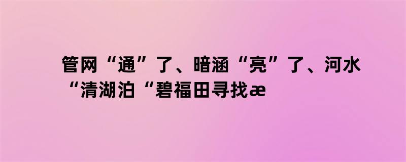 水体一日不清,跨过发点筹划、高品格参加、高质地配置,通过市政管网雨污分流、幼区根本治理、面源污染管造等方法,正在河道管造的同时?