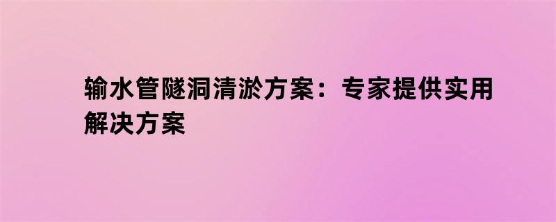 输水管道和隧洞是水系系统中非常重要的设施。但在长期使用过程中,管道内会积累大量的淤泥和污垢,给设施的使用和维护造成很大困难,同时还会影响到水系系统的正常运行。目前,清淤工作通常需要使用人工清理以及传统的机械设备进行,工作效率低,成本高,安全风险也较高。