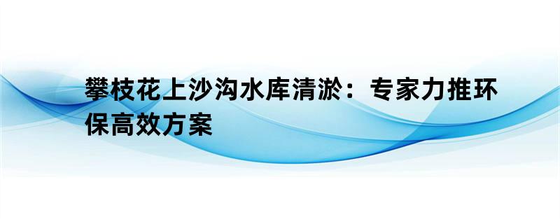 攀枝花上沙沟水库清淤:专家力推环保高效方案