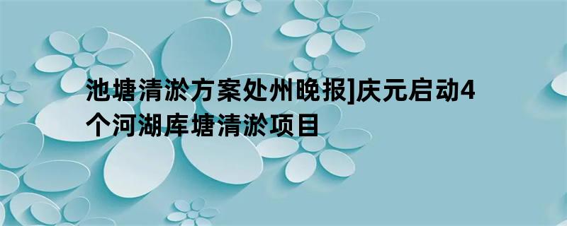 池塘清淤方案处州晚报]庆元启动4个河湖库塘清淤项目