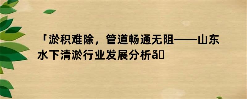 「淤积难除,管道畅通无阻——山东水下清淤行业发展分析」