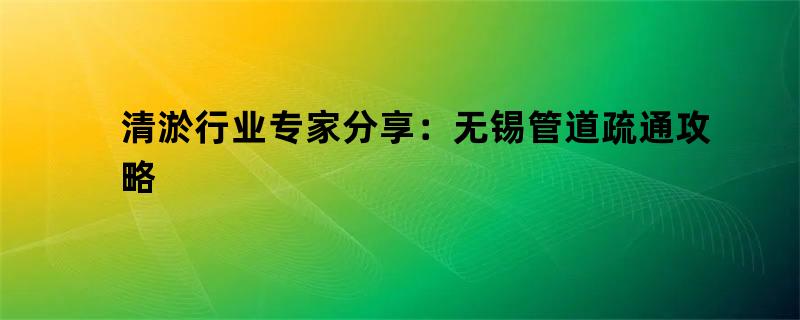 无锡市是江苏省一个人口密集的城市,市区内众多的建筑物和管道网络都需要进行管道清淤和疏通。本文由一位清淤行业专家分享无锡管道疏通攻略,旨在为读者提供专业的知识和技巧。
