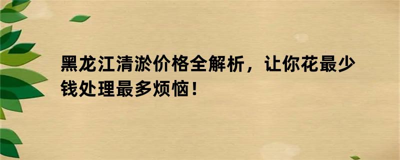 黑龙江清淤价格全解析,让你花最少钱处理最多烦恼!