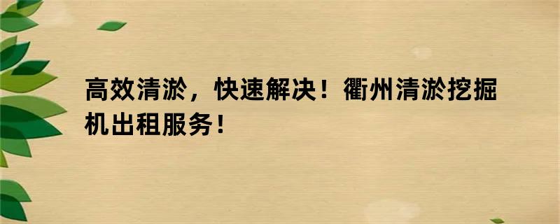 高效清淤,快速解决!衢州清淤挖掘机出租服务!