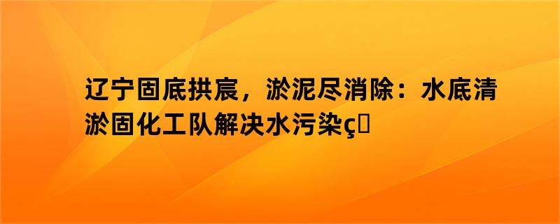 辽宁固底拱宸,淤泥尽消除:水底清淤固化工队解决水污染的新方式