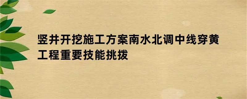 竖井开挖施工方案南水北调中线穿黄工程重要技能挑拨