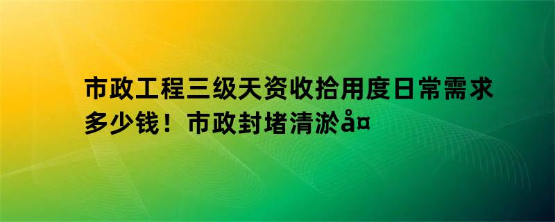 市政工程三级天资收拾用度日常需求多少钱!市政封堵清淤多少钱