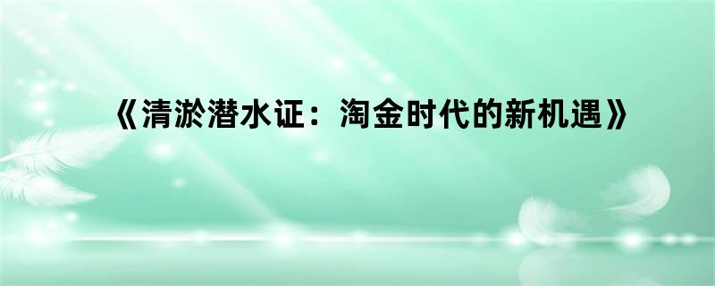 《清淤潜水证:淘金时代的新机遇》