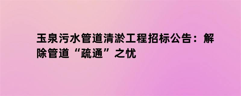 玉泉污水管道清淤工程招标公告:解除管道“疏通”之忧