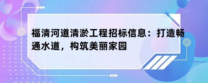 福清河道清淤工程招标信息:打造畅通水道,构筑美丽家园