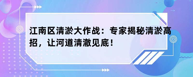 江南区清淤大作战:专家揭秘清淤高招,让河道清澈见底!