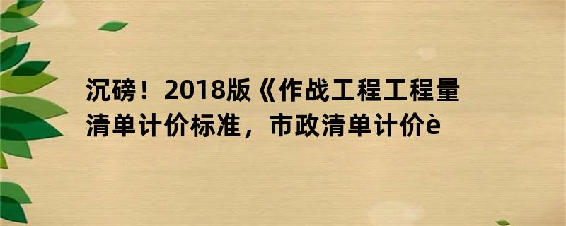 沉磅!2018版《作战工程工程量清单计价标准,市政清单计价规范