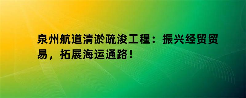 泉州航道清淤疏浚工程:振兴经贸贸易,拓展海运通路!