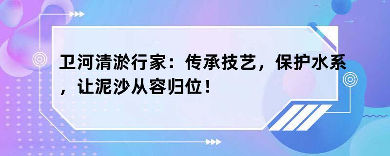 卫河清淤行家:传承技艺,保护水系,让泥沙从容归位!