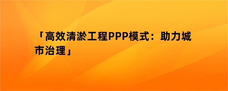 本文主题为「高效清淤工程PPP模式:助力城市治理」。城市治理的一大难题是污水管道被淤塞的情况。高效清淤工程PPP模式的提出,旨在通过私营部门的介入,提高清淤工程的效率,同时降低政府负担。本文将从几个方面详述这种PPP模式的优势以及它对城市治理的意义。