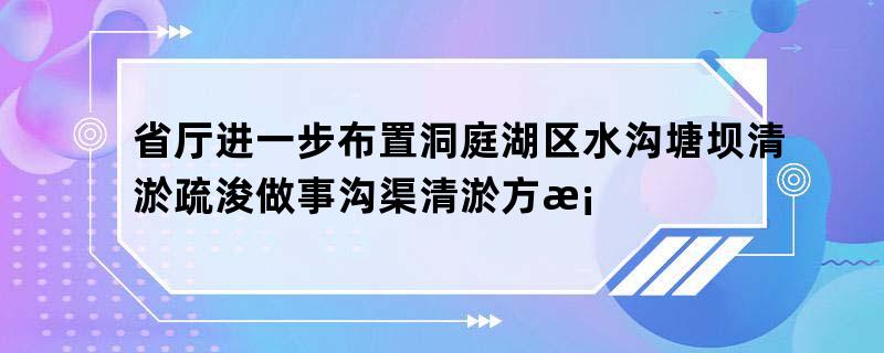 省厅进一步布置洞庭湖区水沟塘坝清淤疏浚做事沟渠清淤方案
