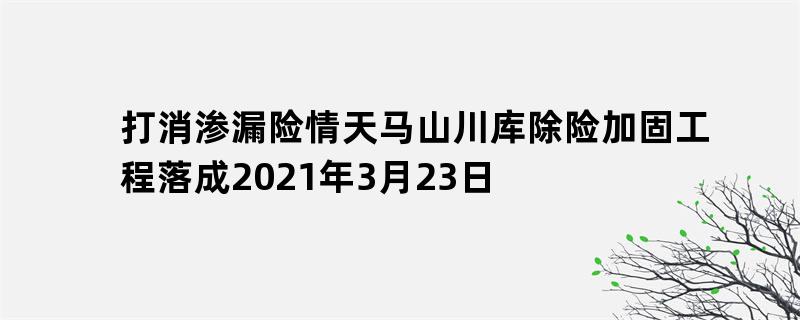 打消渗漏险情天马山川库除险加固工程落成2021年3月23日