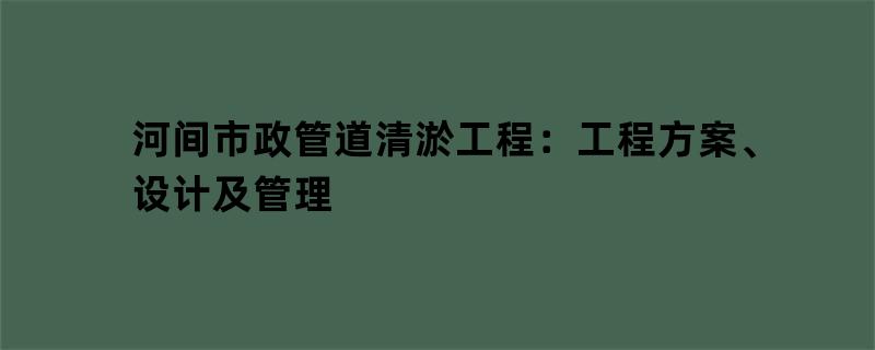 河间市政管道清淤工程,是一项重要的市政公共服务,最大程度上改善了城市环境和居民的生活质量。本文将从工程方案、设计和管理三个方面,详细阐述河间市政管道清淤工程的相关内容,并对市政管道清淤工程的重要性和未来的发展方向进行探讨。