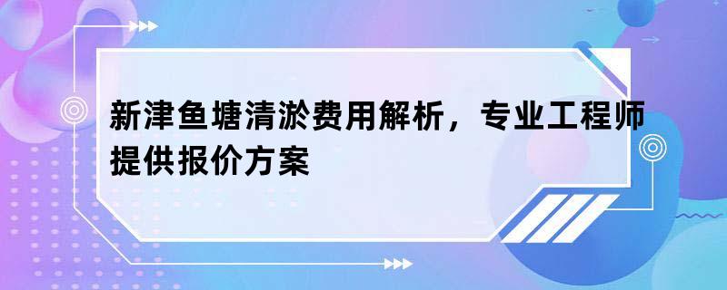 新津鱼塘清淤费用解析,专业工程师提供报价方案