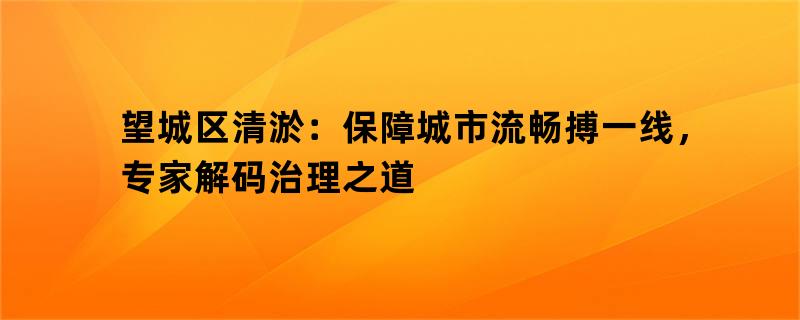 望城区清淤:保障城市流畅搏一线,专家解码治理之道