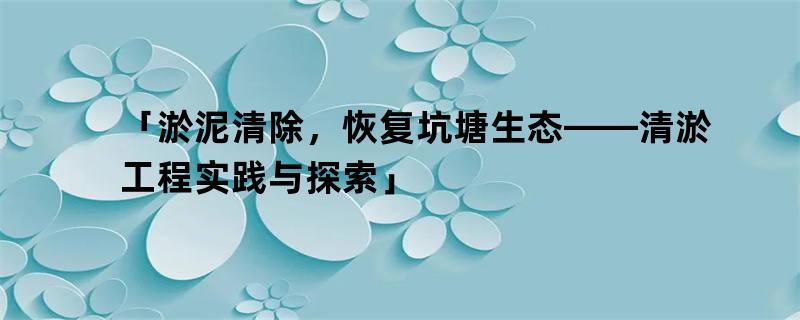 「淤泥清除,恢复坑塘生态——清淤工程实践与探索」