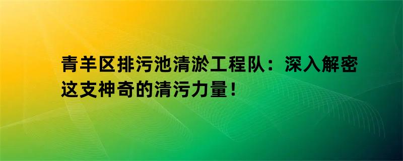 青羊区排污池清淤工程队:深入解密这支神奇的清污力量!