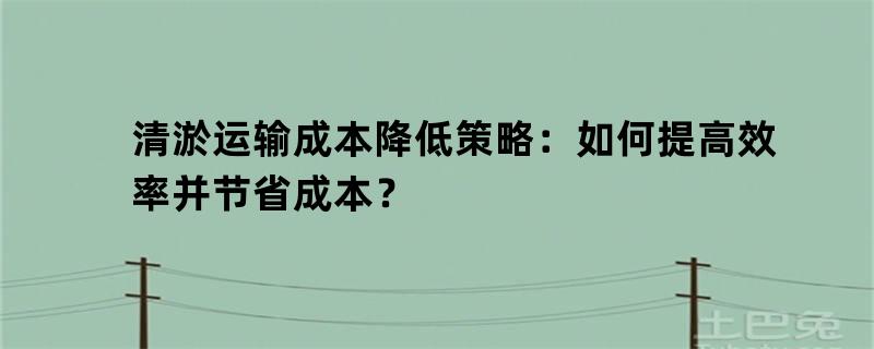 清淤运输成本降低策略:如何提高效率并节省成本?