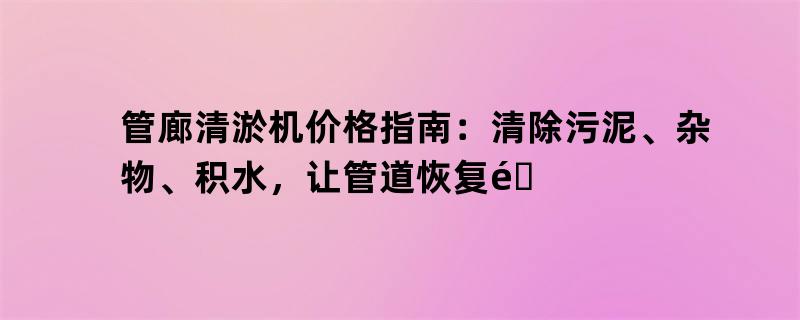 2. 管廊清淤机价格的因素