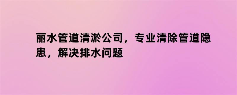 丽水管道清淤公司,专业清除管道隐患,解决排水问题