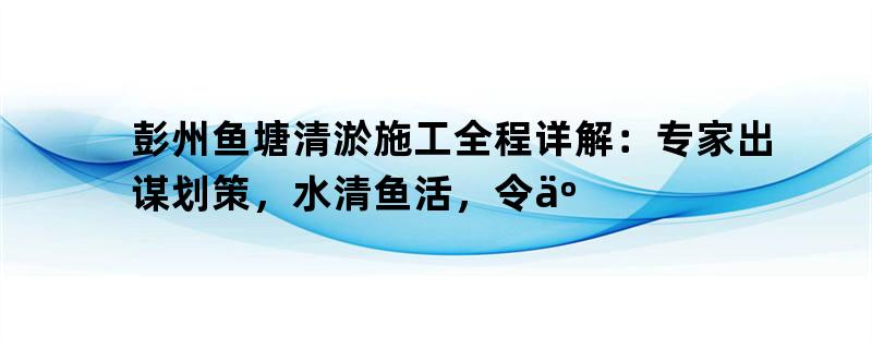 彭州鱼塘清淤施工全程详解:专家出谋划策,水清鱼活,令人惊叹的效果!