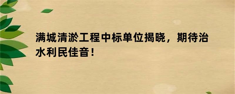 满城清淤工程中标单位揭晓,期待治水利民佳音!