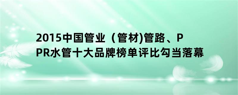 2015中国管业(管材)管路、PPR水管十大品牌榜单评比勾当落幕水管清洗10大品牌